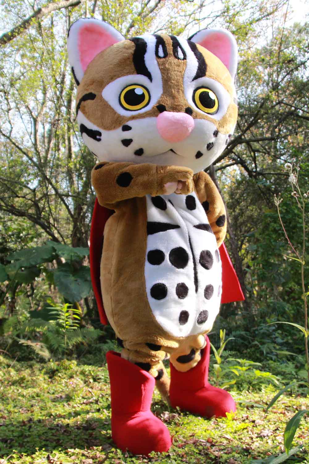 有感於石虎媽媽不幸的遭遇,2013年9月設計師—姚采宜創作出「石虎保育大使」,阿虎團隊便以牠的故事為人物角色。將這份悲傷化作前進的動力,深入校園、園遊會、擺攤市集等大小場合,肩負起「守護石虎的責任」。由於,在野生動物急救站醫療救治時,保育員喚這隻石虎媽媽「阿虎、阿虎」,以安撫醫療行為上的不適,因此便命名為「阿虎」(A-Hu)。身穿紅靴、披上紅披肩,石虎超人就此展開。
